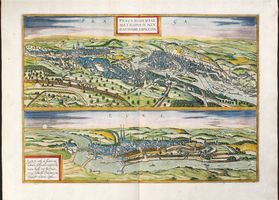 Lit.: BROEKEMA, C. (ed.): Deutschland vor drei Jahrhunderten. Seine Städte, Flüsse und Wälder. Betrachtet von Willem und Joan Blaeu, Georg Braun, Franz Hogenberg und Joris Hoefnagel. Berlin 1971; DVORSKÝ, J. (red.): Dějiny českého výtvarného umění. Sv. II/1-2. Od počátků renesance do závěru baroka. Praha 1989; FUČÍKOVÁ, E. (a kol.): Rudolf II. a Praha. Císařský dvůr a rezidenční město jako kulturní a duchovní centrum střední Evropy. Praha-Londýn-Milán 1997; FUČÍKOVÁ, E. (a kol.): Rudolf II and Prague. The court and the city. Praha 1997; KONEČNÝ, L.: Mezi textem a obrazem. Miscellanea z historie emblematiky. Praha 2002; KOZÁK, J.: Civitates Orbis Terrarum. Umění 31, 1983, s. 381-399; KOZÁK, J.: Joris Hoefnagel a počátky ikonografie Prahy. Staletá Praha 8. Praha 1977, s. 274-281; KOZÁK, J.-POLIŠENSKÝ, J.: Španělská a česká města v ikonografickém díle J. Hoefnagela. Umění 24, 1976, s. 523-535; KUNZE, H.: Geschichte der Buchillustration in Deutschland. Das 16. und 17. Jahrhundert. Textband. Frankfurt/M.-Leipzig 1993; PRAG um 1600. Kunst und Kultur am Hofe Rudolfs II. Essen 1988 (Ausstellung Kulturstiftung Ruhr Villa Hügel, Essen 1988); LAZAROVÁ, M.-LUKAS, J.: Praha. Obraz města v 16. a 17. století. Soupis grafických pohledů. Sv. 1. Praha 2002; SCHEFOLD, M.: Georg Hoefnagel. In: Georg Braun und Franz Hogenberg. Beschreibung und Contrafactur der vornembster Stät der Welt. Textband der Faksimilieausgabe. Plochingen 1965, s. 13-19; WILBERG VIGNAU-SCHUURMAN, Th. A. G.: Die emblematischen Elemente im Werke Joris Hoefnagels. Bd. 1-2. Leiden 1969.