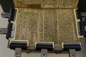 Lit.: ĎUROVIČ, M. (a kol.): Restaurování a konzervování archiválií a knih. Praha 2002; RÜCK, P.: Pergament: Geschichte, Struktur, Restaurierung, Herstellung. Sigmaringen 1991; ZELINGER, J (a kol.): Konzervace pergamenu a jeho uložení. Praha 1992.