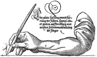 Bibl.: DOEDE, W.: Bibliographie deutscher Schreibmeisterbücher von Neudörffer bis 1800. Hamburg 1958; HEAL, A.: The english writing-masters and their copybooks 1570-1800. A bibliographical dictionary and bibliography. London 1931.